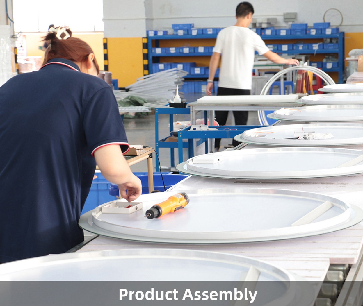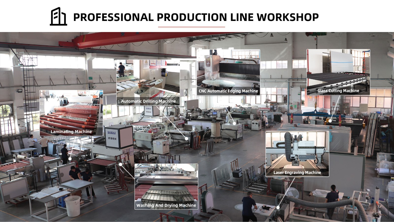 Our professional production line is outfitted with cutting-edge machinery, including Glass Cutting Machines, CNC Automatic Edging Machines, Laser Engraving Machines, Automatic Drilling Machines, Washing and Drying Machines, and Laminating Machines. As a renowned manufacturer, supplier, and factory specializing in wholesale LED mirrors, we ensure each product meets our stringent standards for excellence and innovation.