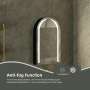 The door uses soft front-edge LED lighting on both sides, built with 2835 2-in-1 LED strips (8 mm width, 1.6 m length). The 3000–6500 K CCT range and CRI > 80 deliver natural, accurate illumination for shaving, makeup and everyday grooming. The arched light pattern creates a clean, modern visual while reducing harsh shadows around the face.