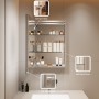 To ensure longevity in high-humidity environments, the cabinet is constructed from anodized aluminum alloy, which provides exceptional rust and corrosion resistance. The unit includes adjustable tempered glass shelves and 110-degree soft-close hinges, ensuring a quiet, luxury feel while maximizing storage efficiency for personal care products.